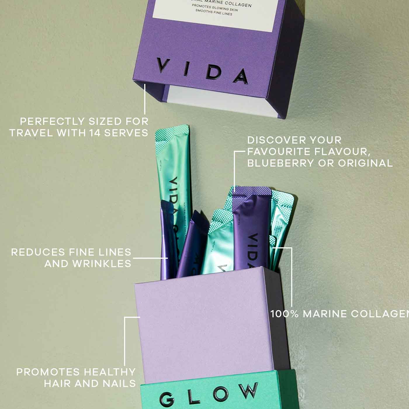The Vida Glow Mixed Natural Marine Collagen Trial Pack is the perfect way to try out the anti-ageing benefits of daily collagen supplements.